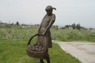 ここでは、お下げ髪の少女が、りんごのたっぷり入った籠を持ち上げている「少女像」が有名です。